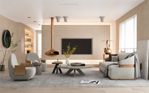 清新淡彩风格分别以米色、杏仁色、鹅黄色等有助于心灵舒压的色系为主,让身心借由柔和色彩获得舒缓空间,这个系列的颜色是艺术涂料装修的基本款。