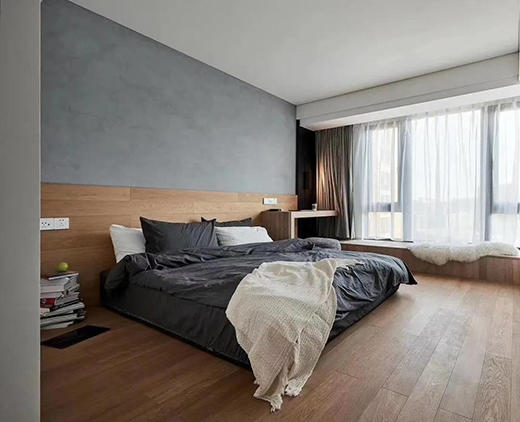 ▲清水混凝土 艺术涂料效果 电视背景墙保留了现代工业粗犷风格的水泥质感墙面,简洁大方,也独有格调。