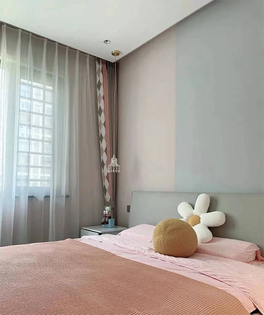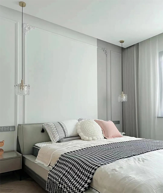 主卧背景墙可以选择高端丝绸质感,光泽细腻温柔,整体搭配舒服舒适,透露出一丝优雅气息。