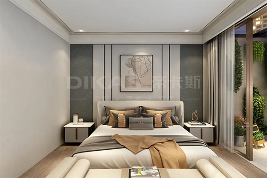 起居空间仿佛就像是能窥见居者对个人生活状态的追求,都市精英追求物质生活的丰富多彩,也对艺术有极高的品味要求。现代轻奢,一种简约与轻奢的韵律和秩序的考量。卧室布局张弛有度,白与灰的搭配透露出温文尔雅的成熟气质,交融着静谧的氛围与柔和不乏雅致的高级感,将质感与生活空间相融,造就了浮生居所。