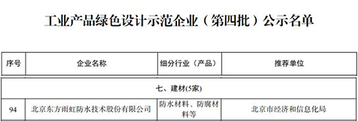 - 东方雨虹入选“工业产品绿色设计示范企业(第