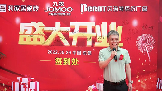 开业仪式中,利家居瓷砖品牌总经理陈总也到达了现场,与利家居清溪旗舰店总经理郑总一起见证这一纪念性的时刻。衷心祝愿清溪旗舰店可以火力全开,业绩蒸蒸日上!