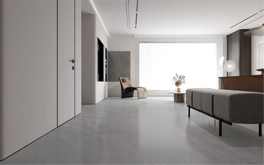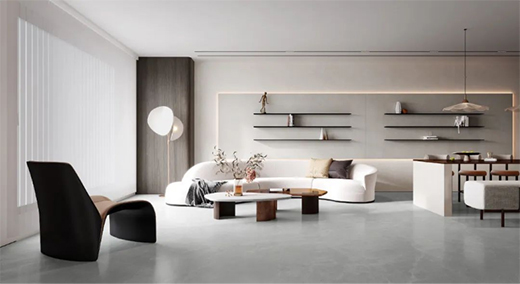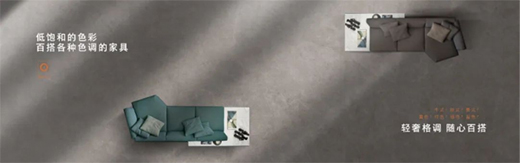 另外,复合轻纹砖还是3%-15%的低饱和度色彩瓷砖,它解决了家具软装与瓷砖色彩的冲突问题。