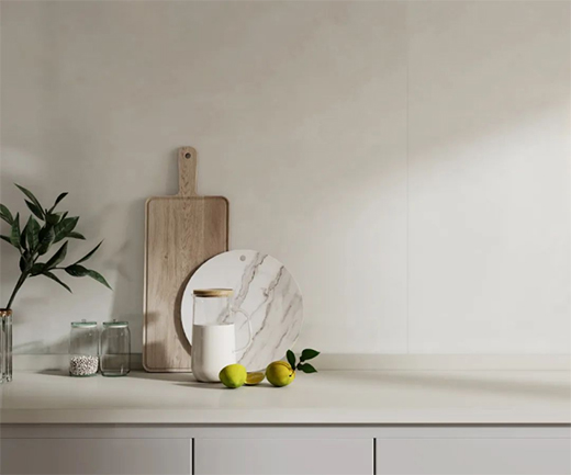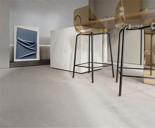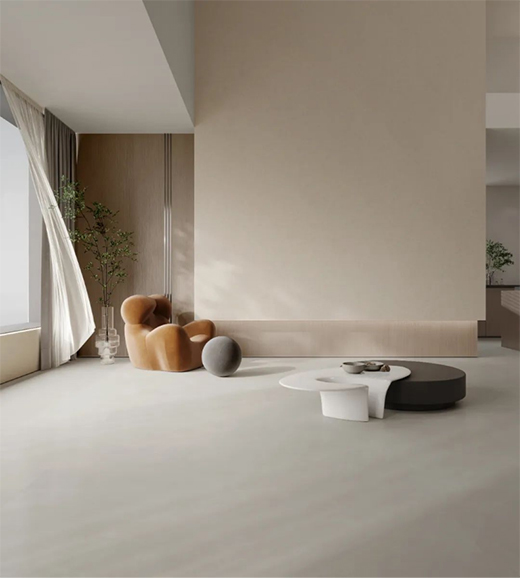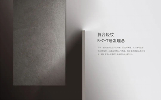 另外,侘寂风也是当下广受追捧的风尚,所以今年的网红款推的是轻纹原素岩板系列,主要设计元素是微水泥、微颗粒水磨石。这种轻纹水泥的图案非常适合营造出安静质朴的家居氛围感。