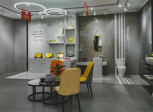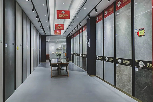 垫江王者地处建材市场的核心地段,因地制宜、定位需求,精准发力,以花色多样、应用广泛的900x1800mm、750x1500mm、600x1200mm大规格产品作为拳头产品,打开销售通路。辅以800x800mm产品配套销售,打造全、优、精的品牌形象,快速、高效地抢占市场,赢得先机,从而在竞争激烈的市场环境中脱颖而出!