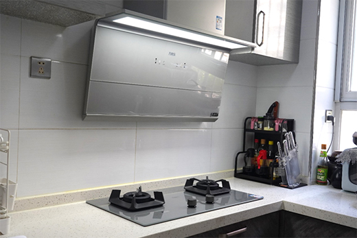 不同于常见的侧吸、顶吸造型,超薄低吸油烟机W8采用独创的超薄低吸式设计,侧面看呈“7”字形,集烟罩厚度仅20mm,底部最薄处仅80mm,配合橱柜一体化设计,让油烟机也能实现嵌入式安装。智能烹饪燃气灶V9在外观上同样采用纤薄设计,纯平镜面面板配合方形锅架,线条凌厉,左右两端采用非对称设计,尽显简约刚劲之美。