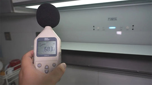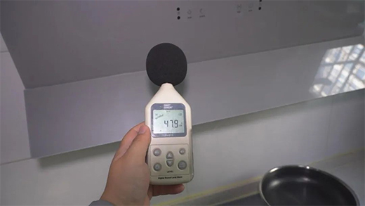 油烟机的风量是越大越好,风量越大往往也会产生较高的噪音。W8超薄低吸油烟机内置降噪设计,最小噪音官方数据为49分贝,经实测仅为47.9分贝。