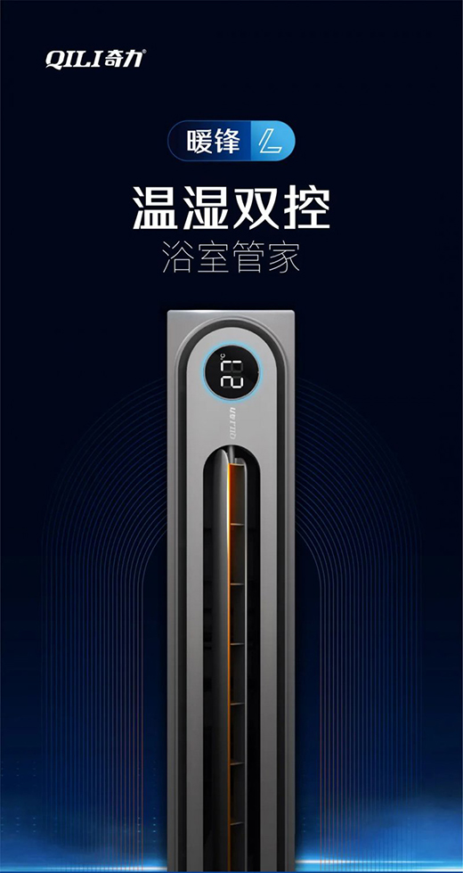 又到了寒风瑟瑟的冬季,碰上暖暖器不给力的时候,简直就是受罪,可市面上取暖器这么多?怎么选,冬日沐浴好搭档——奇力“暖锋L”浴室暖空调,给你冬日满满暖意。