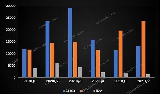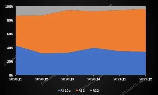 2020-2021年家用空调细分冷媒产品结构(按销量)