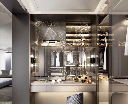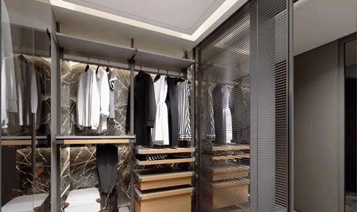 设计没有繁复的修饰,却把小型衣帽间装成高级,有度,轻奢腔调表现得淋漓尽致。