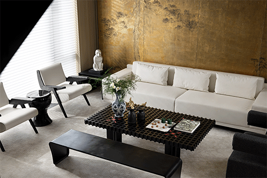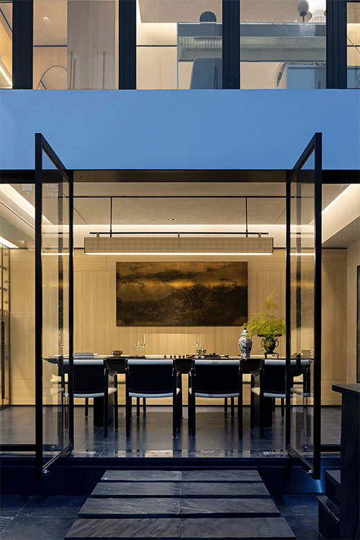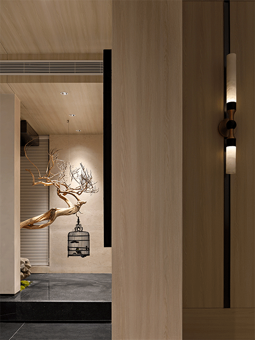 在这套五层别墅中,设计师提取东方美学,重构室内感官体验,并坚持以人与自然共生的设计哲学,将地域人文融入日常空间中,构筑人与自然的和谐关系,使住户能在现代化的城市语境中享受“出则繁华,入则悠然"的自然诗意生活。