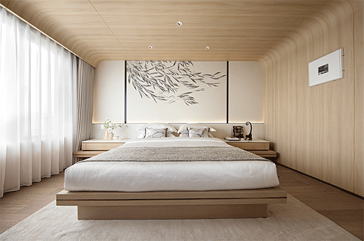 在空间设计与软装陈设上,通过富有层次的格局规划与自然材质的优雅结合,营造出自由舒缓的氛围。