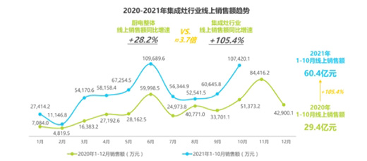 而在厨电行业,2021年属于“集成灶年”。据奥维云网(AVC)总数据显示,2021年集成灶市场规模有304万台,达256亿元,零售量同比增长28%,零售额同比增长41%。集成灶已成为家电产业增长最好的品类之一,并牢牢占据厨电行业增长至高点。
