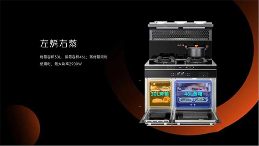 优格左烤右蒸集成灶,选择用科技来满足美食达人们的下厨乐趣,双腔独立,蒸烤同步。