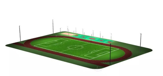 室内篮球馆照明效果展示 跟室内不同,室外球场主要由足球场、羽毛球场以及2个篮球场组合而成。一直以来,足球运动深受国人喜爱。然而却因场地稀缺、设施落后等问题,抑制着我国足球产业的进一步发展。加强足球场地设施建设,是夯实足球运动发展基础的必要手段。专业的足球场照明设计,对运动员的水平发挥和安全健康有着至关重要的作用。