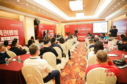随后,杨董事长又以“ASHER亚设体育存在的意义”为引题,对品牌综合实力做全面讲解。从研发实力到科技水平,从产品创新到专利升级,从销售开拓到服务特色,杨董事长向在座嘉宾展示了一个富有创造力又脚踏实地的大国品牌形象,并且向各位经销商发出邀请:让我们一起并肩作战,带领“ASHER亚设地面球场材料”、“ENOCH以诺人造草坪”、“MEGAIS曼吉亚斯红土”三大品牌引爆行业趋势,引领行业发展。