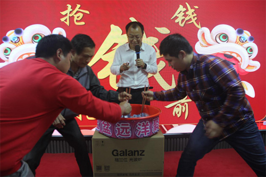 为表彰远洋员工们全年的辛勤付出,年会上给员工准备了花束,余总亲自颁发节日红包,也特意展开“远洋聚宝盆”夹钱游戏,一大波福利惊喜连连。
