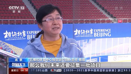 五棵松体育中心场馆运行团队主任 陈双:科技场景应用无处不在,奥运就是一个很好的窗口,所以我们要在这里头优选去展示,那么我们未来还要征集一批项目,来不断地纳入我们的科技奥运的内容里头。