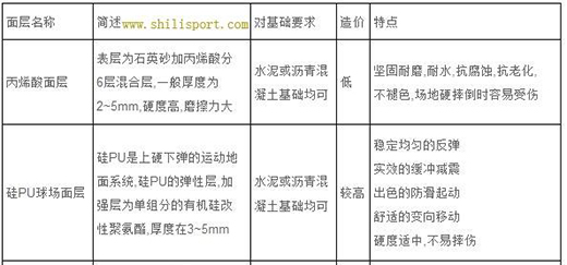 PU材料: 聚氨脂橡胶、有弹性、有韧性、防水效果好,即是塑胶篮球场.