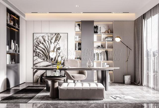 美诚美家全铝定制书柜,根据业主的喜号、需求进行量身打造。提升整体的空间艺术。