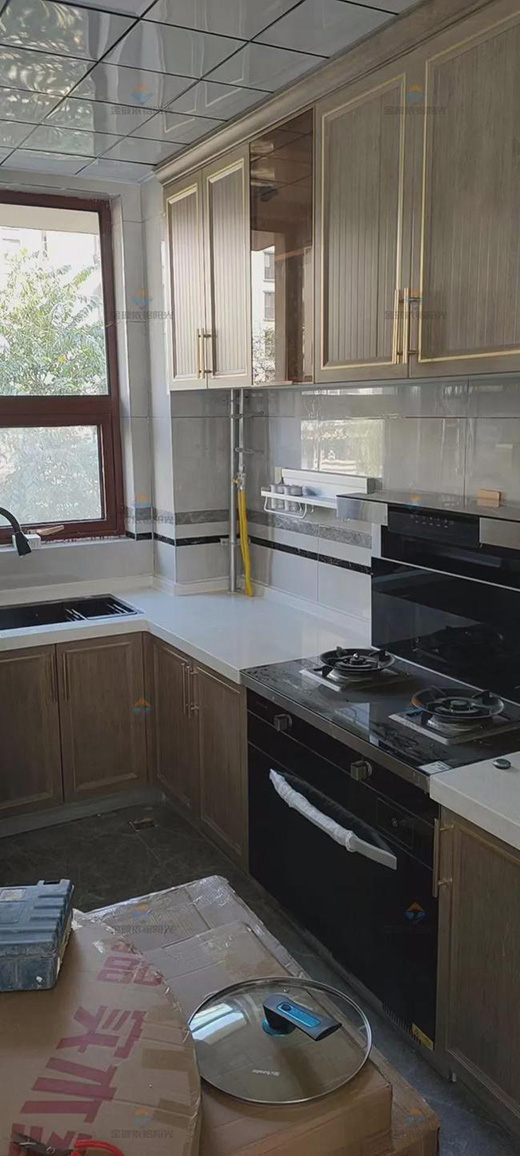 全铝家居有牢固、稳重的特点,铝合金具有一种厚重感和结实感,使用寿命很长,质量优良的全铝家居采用进口五金,一套完美的厨柜可用一生没有任何问题。