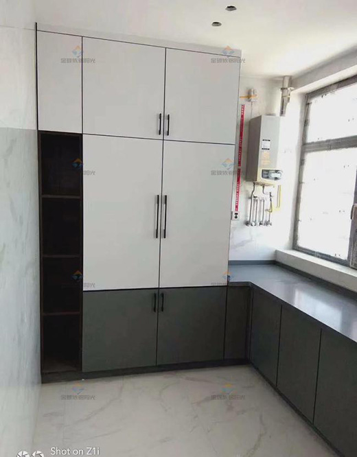 最后,全铝家居容易清洗,并且永不变色,很多其他木质家具的柜体用久了都会变色变旧,而全铝家居的好处就是永远是新的,看不出来使用年限。