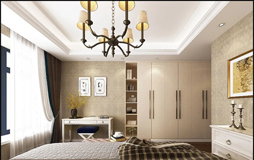 西南铝全铝家居利用床尾的一整面墙定制衣柜+梳妆台,梳妆区就是整面墙最好的留空处理,增加功能的同时,也不会产生压抑感。西南铝全铝家居考虑到梳妆台的照明,那么从多角度、自然光的温色这样镜中反射出来的光源会辅助爱美的你画出最美的妆容。