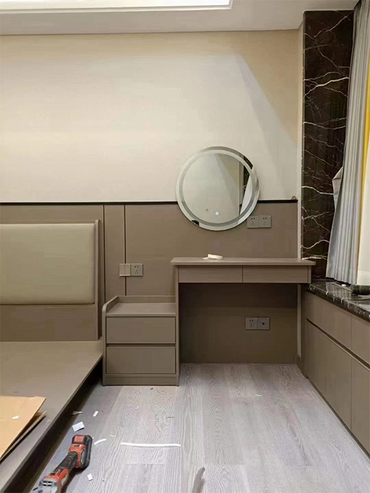 全铝家居硬度性强,永不变色、不易变形,可防虫,不怕蟑螂、白蚁侵袭,使用寿命达50年以上,非木宜居板材结构拥有专利技术,更科学,更厚,更安全。