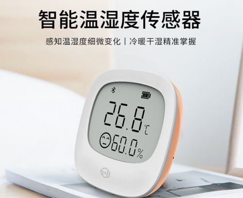极简桌摆设计,内置数字式高精度温湿度传感器,可持续精准监测环境温度、湿度变化,并在LCD宽屏上显示监测数值和环境状态表情符号。支持桌摆、墙贴两种安装方式。