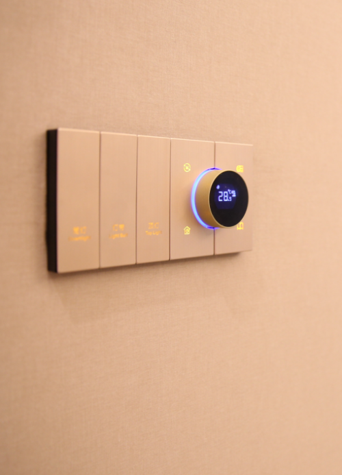 智能面板控制保留了原有的家庭控制模式,它具有开关、调光、窗帘、—键场景等功能,老人和小孩都可以轻松上手,非常人性化。智能面板最让人安心的是它的“离家模式”,出门前只需按一下它,家中的一切电器设备都会自动关闭,安装的智能安防设备也会即刻开启,智能门锁、烟雾传感器、智能监控家居智能产品共同为你布防,时刻守护你的家。