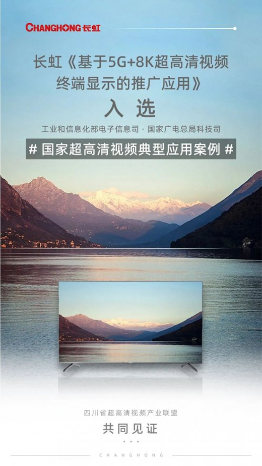近日四川省超高清视频产业联盟推选的《基于5G+8K超高清视频终端显示的推广应用》(申报单位:四川长虹电器股份有限公司)入选工业和信息化部电子信息司、国家广播电视总局科技司发布的《关于对拟入选超高清视频典型应用案例名单进行公示的通知》。