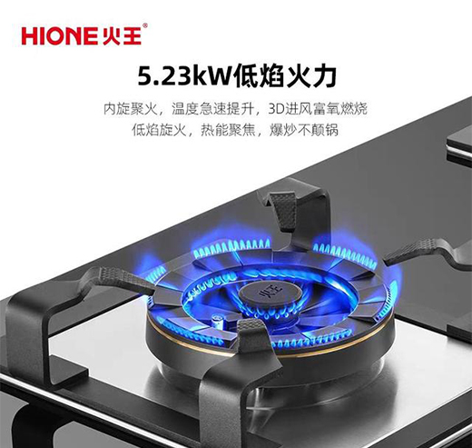 当然,做中式菜肴,最注重的就是火力和净烟效果了。日常烹制中,少不了要煎炒烹炸,火王这款集成灶,是目前集成灶行业里唯一可达到最大火力值5.23KW的,采用的还是专利的低焰燃烧技术。
