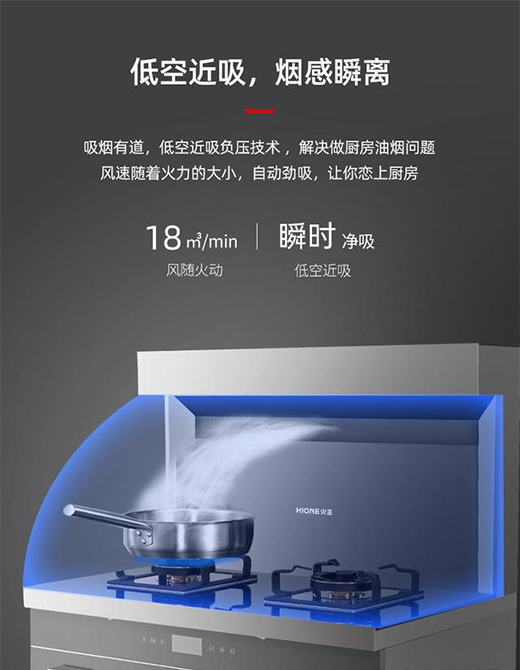 在爆炒和油炸食物过程中,会产生大量油烟,这也是最让人头疼的问题。火王的太空灰系列集成灶,通过改良的整体一体成型的U形全不锈钢消音烟道,达到了行业吸净率最高水平的99.99%,能够做到爆炒100个辣椒都没有辣味,同时,风量不必手动调节,她具备风火同调、风随火动,区别于普通的风火联动功能,在调节火力大小的同时,她会自动同步火力所需风量,进行自动调节,可以有效提升效能。