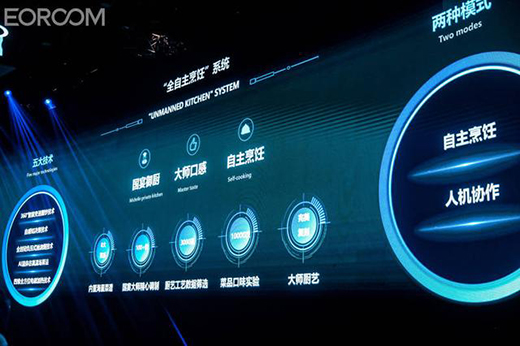 1月1日新晋发布的有屋智慧无人厨房新品,通过多感知交互系统,将人机交互从针对单一设备、单向指令式升级为多通道的泛人机交互,让厨房可以持续自主学习海量菜谱,带给用户全自主烹饪体验。