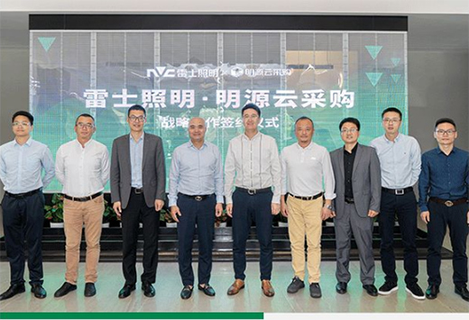 5月18日,雷士照明与明源云采购在雷士照明惠州总部签署战略合作协议,雷士照明CEO林良琦、战略副总裁李海波、工程赋能中心总经理皮伟及明源云集团副总裁张晓峰等双方团队出席了签约仪式。