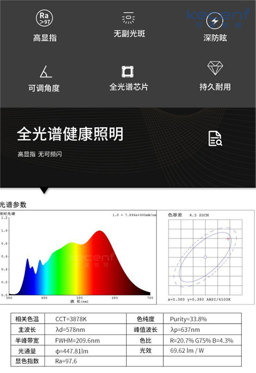 若需了解更多与全光谱照明相关的知识,敬请关注小红书、抖音、哔哩哔哩、公众号等渠道的KECENT可圣照明官方账号,更多专业资讯与大家共享。