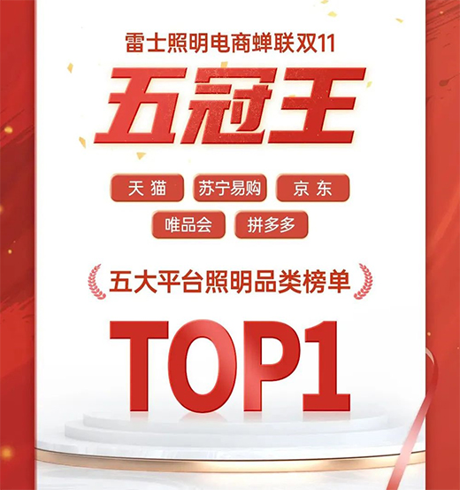 雷士照明电商今年“双11”蝉联天猫、苏宁易购、京东、唯品会、拼多多五大电商平台照明品类榜单TOP 1。此外,雷士照明抖音销售额同比增长242%,拼多多平台同比增长83.6%,勇夺照明行业全平台直播销售额TOP 1。