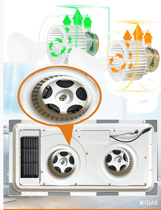 1、双电机双风道系统,吹风换气可同时进行。