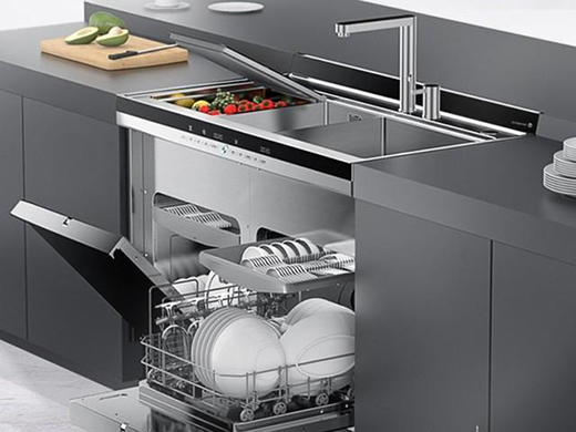 火星人D7集成洗碗机是一个全新的品类,将水槽、洗碗机、碗柜、果蔬海鲜清洗机合为一体,在小空间内实现功能的多样化、一体化,让用户能享受到更便捷、高科技操作方式。