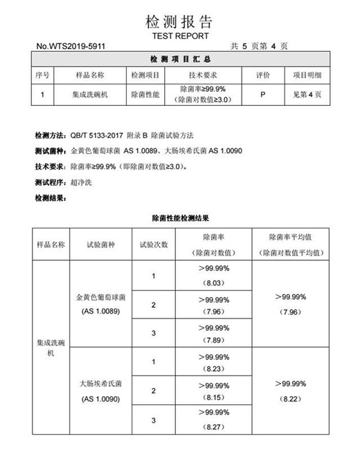 检测结果显示:果蔬清洗机模块,敌敌畏、甲基毒死蜱等污染物均能做到95%以上的去除率。而洗碗机模块,对于金黄色葡萄球菌与大肠埃希氏菌的杀菌率更是高达99.99%!这么出色的洗涤效果,你放心了吗?