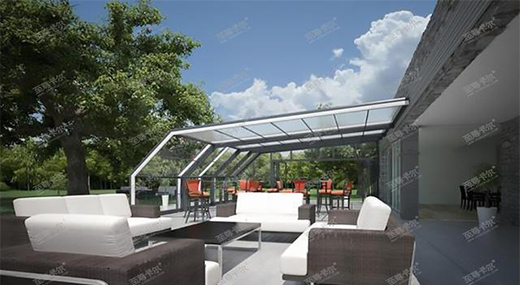 除了上面所说的,聚碳酸酯板阳光房相比比玻璃阳光房,还有个最突出的特点就是能够智能伸缩折叠,随意改变阳光房面积,实现室内外空间自由转换,封闭时能够遮风挡雨,露台花园里的花草不会受到破坏;开启时可以吹吹风,呼吸新鲜空气。