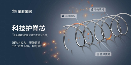 为了让消费者拥有舒适的睡眠体验,星港家居于2021年重磅推出“科技护脊芯”、“科技环保技术”、“科技免疫”和“科技全净眠”四大支撑系统,致力缔造舒适健康睡眠!