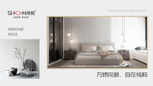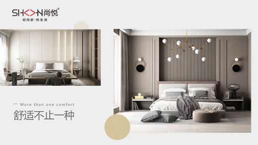尚悦家居以“时尚家、悦生活”为设计理念,始终专注睡眠设计,以健康睡眠类产品为核心,主打极简、轻奢等符合当代主流的审美风格。软体床设计紧跟当下年轻人追求时尚,张扬个性,率性而为等趋势元素,力求产品时尚、简约、轻奢等主题风格;床垫设计紧跟人体工程学原理,设计出的每款床垫都能适合大众人群的睡眠需求。在材料采购方面,严把质量关,甄选国内一流制造商生产的家具材料,比如在床垫面料选择上,除采用国内优质面料商生产的面料外,还会采用进口的功能性面料,以保证面料具备其抗菌、防过敏、防污、透气性、耐用性、抗起球、阻燃、磁性、减少电磁波辐射等辅助性功能。在床垫内材选择上也是采用诸多高端睡眠材质,如透气防水抗菌的美国特卫强杜邦布,如吸湿除臭的黄麻棕,如防螨抗菌的天然乳胶,如睡感极度舒适的清水棉,如透气干爽可水洗的3D材质……在软体床的皮料选择上,只采用皮质细腻柔软的进口头层黄牛皮,在制造工艺上尽可能的考虑用户使用的便利性和感受。尚悦家居所做的一切都是为客户创造价值,为用户缔造极致睡眠,享受愉悦生活。