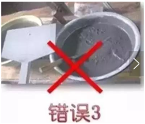 2 把瓷砖胶放在地上用铁锹搅拌首先放在地上会导致瓷砖胶的有效化学成分流失;其次用铁锹无法搅拌均匀,同时手工搅拌加水的比例很难精准,使材料配比发生改变,导致粘接力降低。
