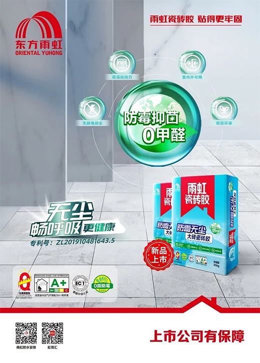 以品质锤炼产品的同时,东方雨虹致力于引领行业发展。一方面推动研发无尘瓷砖胶,在解决瓷砖空鼓问题的同时,从根源上降低粉尘污染,号召创建“无尘”施工环境,持续关注工人施工环境和健康;另一方面率先布局标准化施工工艺,积极响应国家住建部《房屋建筑和市政基础设施工程危及生产安全施工工艺、设备和材料淘汰目录(第一批)》规定,连续十年举办全国能工巧匠大赛,培育近百万名建筑英才,引导薄贴施工法,更好满足消费者对健康人居环境的追求,擘画产品产业新篇章。
