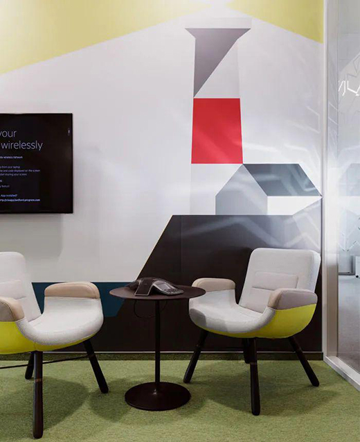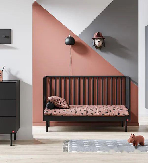 几何拼色是由几何图形+不同色彩组合而成,大胆的几何图形配合床、软装搭配,在色彩上尽量选择相同或相似系列。有时候别具一格的墙面设计不再局限于某个特定的区域,而是随性发挥。