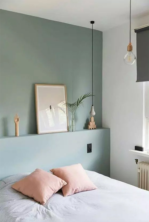 墙面颜色搭配方案5:墙面纯色设计如果你家里不想要多种颜色出现的话,可以选择单一种颜色,这种颜色就可以成为你家的主色调,比如可以选择高级灰、雾霾蓝、脏粉、浅绿色等,看起来也是很美的,总比大白墙要好看!