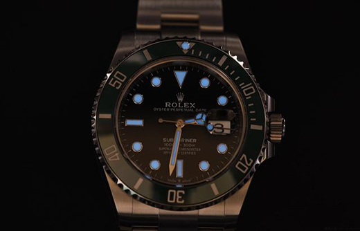 对于潜水员而言在水下准确读时至关重要,这对于他们是性命攸关的事情,而劳力士在这方面一直做得非常好,整体盘面一目了然清晰易读,腕表时标与指针均涂覆有Chromalight夜光涂料,图为腕表实拍的夜光效果,在黑暗环境下散发出持久蓝光。