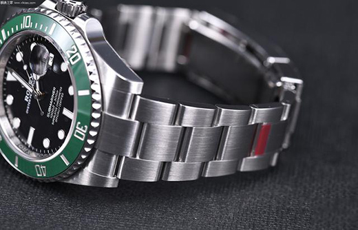 劳力士为新款的绿水鬼配备一条蚝式三格实心链节表带,表带表面磨砂边缘磨光,与表壳效果一致,从视觉效果上更突显腕表的整体性。在这里还要说一点,因为新款的表耳间距有所改变,所以表带链节也进行了相应调整,也就是说新款与老款的链节并不通用。