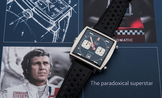 该腕表由Jack Heuer亲自操刀设计,以知名的一级方程式赛车赛道命名,并在1970年《极速狂飙》电影开始拍摄时,被Steve McQueen选中并佩戴出镜。McQueen将佩戴出镜的其中一枚Monaco系列计时腕表赠予电影的首席机械师Haig Alltounian以示感谢。该腕表由Alltounian直接委托拍卖,表背镌刻了Steve McQueen的寄语:「TO HAIG Le MANS 1970」。